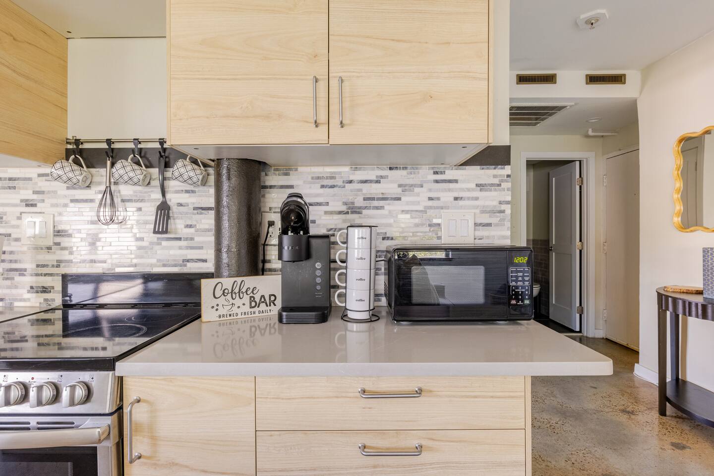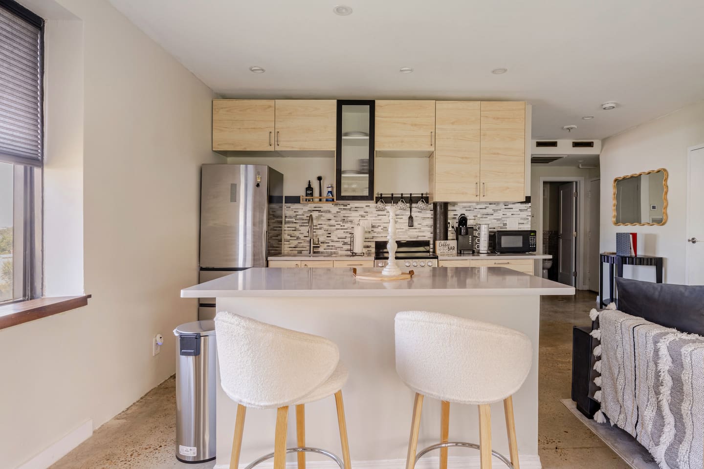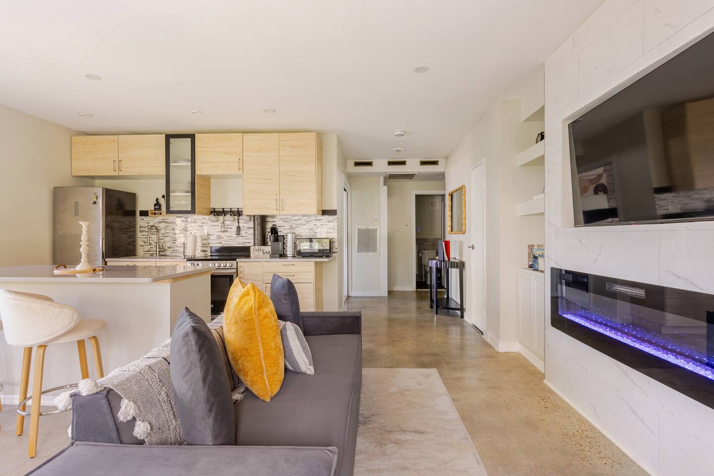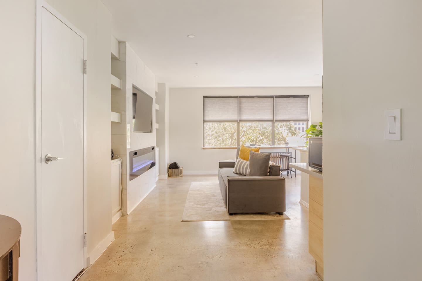 Experience the best of downtown living in this contemporary condo! Enjoy a built-in entertainment center, perfect for movie nights, and a sleek island in the full kitchen, complete with modern appliances. The bedroom features a comfortable queen-sized bed, automatic tv from ceiling and with free WiFi, you'll stay connected throughout your stay. When you're ready to venture out, Sweet Petes is just a 3-minute walk away (or 2 minutes on scooters!), and the skyway is easily accessible at James Weldon Johnson Park, where you can also catch food trucks and enjoy the scenery. Just a 5-minute drive away, you'll find a variety of restaurants and The Fresh Market for groceries in the Brooklyn Station on Riverside. Plus, take advantage of the nearby River Walk along the St. Johns River, YMCA, Parks, Cummer Museum, and Art walk - the perfect blend of urban convenience and natural beauty!"